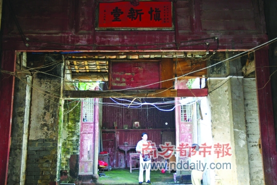 苗家祖屋屋顶长出了各种植物。 刚下完细雨的傍晚,记者来到北门大街,寻访苗家的祖屋。走过繁忙古朴的五一路,向左的一个转角往前就到了北门大街。低矮的电线穿过房顶、窗户、树枝,凌乱地沿着曲折的小路向前伸展着。北门大街25号就是苗家的祖屋。 老屋只剩下主体部分的框架 首先映入眼帘的是门上鲜红的对联,一联是“派衍东阳”,另一联已被撕烂,看不出内容了。苗理洁告诉记者,他们的祖屋已有几百岁。记者看到,现在的老屋就如一位四肢残缺的老人,只剩下主体部分的框架,昔日的繁华早已消失殆尽。 “现在看到的门只是原祖屋的一扇小门,曾经的大门是描绘着精美壁画的门楼。门楼正中,还有一幅寿星公与手托寿桃的童子。那拄着仙杖的寿星公,饱满的天庭、慈祥的笑容,总会让她不自觉地想起她的祖父,那享誉东江的老教育工作者。这具有文物价值的壁画和门楼,在“文革”时,全毁于动乱之中。对当年的情景只能依靠想象了。”苗理洁说:“苗家后人很久以前就全都搬出这里,老屋现在出租给别人住。” 宽敞的大厅是全屋的中心点 记者走进门,看到门的左边是个厨房,有一男一女正在下厨,操着一口外省音,他们是这里的租客,对这间大屋的过去一问三不知。其中一扇门前种了一棵植物,绿意盎然。这棵植物让这苍老的屋子增添了一丝生气。再向前就是大厅了。在苗理洁记忆中,老屋分为左右两边厢房共10余间,住着曾祖膝下的五房儿孙,前后几代的读书人家。老屋还有上下左右的四个大天井,有上下厅、磨房、花池,还有四季葱郁的后花园。记者四周环视,从现在的老屋看,左右两边有好几间厢房,但天井、磨房、花池和后花园都无法找到了。 宽敞的大厅,是全屋的中心点。苗理洁曾在散文集《水城故事》提及这个大厅,在这大厅,大人们耐心教导,孩子们游戏嬉笑,读书学习,似乎仍回荡着百年来兢兢业业的教书声。苗理洁说,苗家人性格虽各不相同,父亲倔强、四伯父敦厚、伯母温和、堂伯父豁达开明,但骨子里都是勤奋刻苦、低调不张扬,他们都在为理想默默耕耘,一心从事教育工作,甘愿做最朴实平凡的人。 老屋精神在苗家后人中流传 大厅的前面,又是一扇大门。大门耀眼的鲜红色被岁月侵蚀得越发暗淡,留给后人更多的是对当年繁华的无限遐想。门前是下厅,是用来供奉祖先的地方。每逢清明,苗家人都会毕恭毕敬地做一番祭祀。回想起苗理洁的讲述,可以想象得到过去的苗家人每年祭祀的热闹情景。女眷们杀鸡宰鹅,蒸肉丸子,酿东江豆腐,各种丰盛的菜肴摆满几大桌子。孩子们兴奋异常,开心地在一旁左顾右盼,还没上菜已口水直流。苗理洁说,老屋里的女眷们都是聪慧而勤劳的人。在那清贫的年代,她们的一双巧手和好厨艺让这朴实无华的老屋增添了不少亮点。 曾经的门楼、天井、磨房和后花园,都已了无踪迹,有的只是这宽敞残旧的两个厅,仍在顽强挺立的大木柱子,还有暗红的几扇残缺不全的门。门也是大家族的象征。大家族房子大,房间多,门自然多。这老屋虽已残缺不全,早已失去繁华英姿,但这门还在,那苗家人骨子里的精神还在。这一扇又一扇的门是苗家人的象征,在这一开一闭之间,培养了一辈又一辈的教书人,走出了一位又一位的教育家。即使这老屋在哪一年化作了尘埃,消失在这个城市中,它的灵魂也会永存,因为老屋的灵魂精神将在一代又代的苗家后人中留传下去。 因为热爱,所以坚持 从七岁那年踏入小学校门,第一次看到笑容满面的老师开始,就对老师油然产生出一种难以言表的崇拜感。那时候的我,总觉得所有的老师都知识渊博,智慧灵动,于是无论老师说什么,总会把它当“真理”一样来对待。常常在家里,妈妈反复强调不能做的事情,对于我而言,都只是“左耳进,右耳出”。然而,老师随口说的话我却很认真地牢记在心,唯恐忘记。 长大后,随着自身阅历越来越丰富,对老师的崇拜感却渐渐削弱了。对老师的定义也就是和其他职业一样,不过就是“养家糊口”的工具罢了。但当我走近苗家这个教书大家族后,平静的内心掀起了层层涟漪。 曾经的苗宅大屋,住的是当时惠州名门望族,如今却只是城市中不起眼的一隅。岁月改变了城市的面貌,时光带走了苗宅大屋昔日的繁华,人们的思想观念随着大潮流都在向前追赶,却没带走苗家人骨子里的精神。他们保留了前辈训导的严格、简朴家风,追求奋发进取求学、低调不张扬的精神。他们没有迷恋在官场上叱咤风云的高官,也没有成为驰骋商海的巨富,更多的后人秉承了教书育人的信念,扮演着一个传道授业解惑的角色。 对于大多数人来说,只当几年教师的人,也许就真的把“教书”当作养家糊口的工具。可是,一辈子当教师的人,“教书”就不仅仅是养家糊口那么简单了。对于他们来说,早已把教书当作是自己热爱的事业,甚至是精神食粮。日复一日,年复一年,兢兢业业地站在三尺讲台,带领学生走进知识的殿堂,甘愿做那一片默默奉献的绿叶,时刻衬托鲜花的娇艳。 正如苗家后人苗理洁所说,苗家人世世代代都甘于平凡,并享受着这种平凡所带来的快乐。“我们不知道什么最时尚,不懂得圆滑世故,只知道因为热爱,所以一直坚持。”我想,能视平凡为快乐,在他们的心里都会藏有一份感情,那是对教书最真挚的爱。从苗家的祖宗到苗家现在的后人,在他们的身上,都有着这种迷恋“教书”