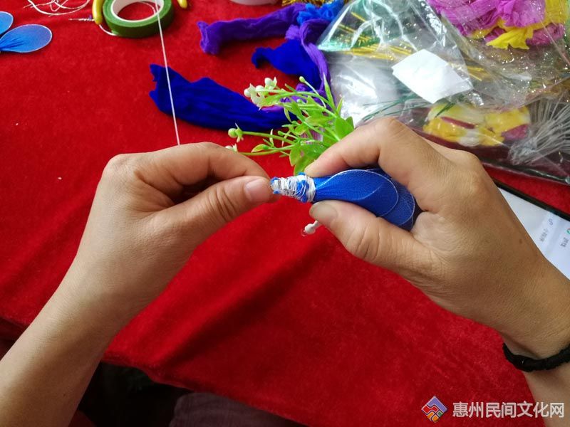 艺博会上,最抢眼的除了琳琅满目的花灯,还有小巧可爱的手工艺品和现场即兴表演制作,如剪影、编织、画画、泥塑、缝纫、牛仔木工、植物拓染等,心灵手巧的艺术家们现场制作以及互动,赢得了观众的亲睐和好评。尤其是剪影、牛仔木工和植物拓染,甚得孩子们的喜爱。来自实验中学的黄姓学生,对植物拓染非常感兴趣,自己构思图案,把各种颜色和形状的叶子轻轻敲打到白布上,她说:“这样把叶绿素敲打到布上,是很有意义的艺术。”牛仔木工制作尤为男孩子们喜欢,其中一个小朋友的妈妈说:“从进来展馆就呆在这里,再也没挪地方了!”可见男孩子对牛仔木工的喜爱。“这是一项锻炼孩子动手能力的最好活动,趣味性强。”指导老师说。