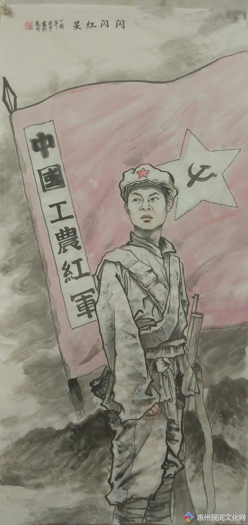 红色军魂是民族的脊梁、民族凝聚力的象征,在中国人民解放军建军90周年之际,本馆展出民间文艺家们奔走各县区拍摄的89幅照片和创作的36幅书画作品,表达我们对惠州英烈的深切缅怀,对强军安邦的殷殷祈望。在这里,我们引发共鸣,收获感动,面向军旗点燃胸中火炬,誓为实现中华民族的伟大复兴砥砺奋进!