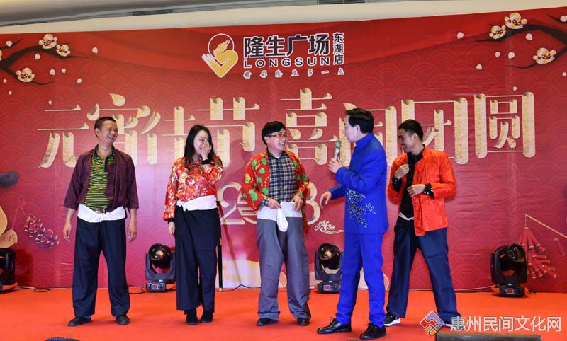 为了落实中央“文化进万家”的指示精神,弘扬优秀传统文化,惠州市民间文艺家协会继春节期间8场“文化进万家”活动后,3月2日元宵节又举办了三场活动:中午,惠州民协副秘书长、中国民协会员张燕华在惠州电视台接受访谈,介绍惠州各地元宵习俗。下午和晚上,在隆生广场举办2018新春灯谜会,在民协人制作的本土花灯辉映下,会员创作的200条灯谜供市民猜射。晚上7时30分至9时30分,在隆生广场一楼举办元宵晚会,惠州民协艺术团和惠州市旗袍协会载歌载舞,向观众赠送汤丸,与群众共度元宵。