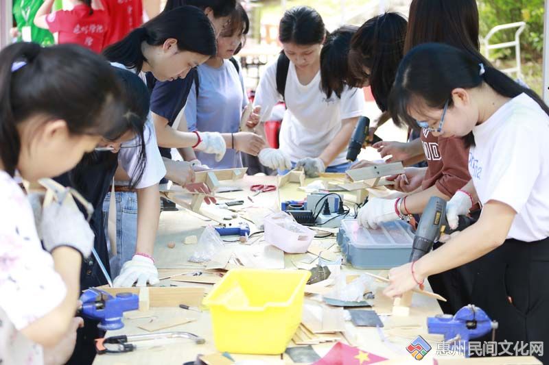 端午节临近,弥漫着节日气氛。6月6日,在惠州学院的一条主干道上,一片热闹景象,这里正在举行“我们的节日——端午节”活动。这次活动,由惠州学院党委宣传部、共青团惠州学院委员会、中国教育工会惠州学院委员会、学生处共同主办,政法学院、音乐学院、惠州学院学生会和惠州市民间文艺家协会联合承办,有2000多名学生参加活动,其中不少学生参与了制作端午手工艺品、食品的体验活动。