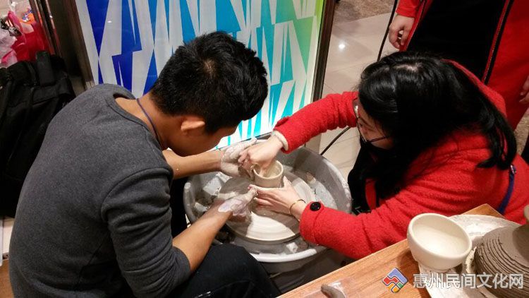 3月5日元宵节,惠州市民间文艺家协会在惠州华贸天地四楼“美食汇”举办“元宵民间工艺美术展”,10几位民间工艺美术家在现场展出了彩瓷、陶塑、泥塑、剪纸、丝网花、铁艺、沙画、墙皮画、国画、书法等作品,并现场制作,向观众传授工艺知识,向参与学习、制作的观众赠送工艺品。