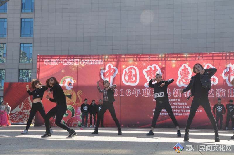 2月8日年初一上午,艳阳高照,惠州市民协艺术团应邀到惠东县文化广场参加惠东县委宣传部、惠东县文广新局、平山街道办事处举办的“‘中国梦•惠东情’2016年惠东县新春文艺演出”。文艺家们和惠州市冰莹炫舞舞蹈团、中国音乐学院与星海音乐学院的惠东县籍学生共同表演了男女声独唱、三重唱、独舞、群舞、街舞、魔术、变脸、反串等18个精彩节目,受到现场1000多名观众的热烈欢迎,不少热情的观众在演出进行中走上舞台与表演者合影。