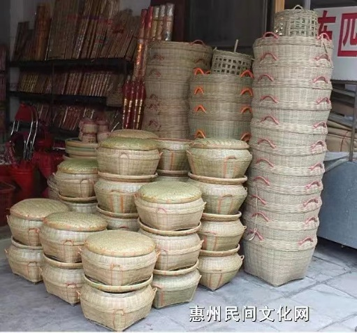 过去,从东江上游运来的竹木,在惠州上岸,遂形成竹编的手工艺工场(惠州人称之竹器社),竹器也成为惠州百姓数百年来日常生活的主要用品,竹床、竹席、竹凳、竹台、竹篮、竹箩,包括养鸡的鸡笼等等都是竹编,直至上世纪80年代改革开放后,竹器才慢慢淡出百姓生活。
