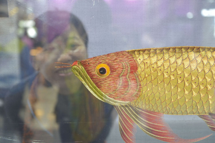其实每一个女人,心底里都有一个才子佳人的梦。如果能够选择,我想梦回唐朝,云鬓高挽,长裙飘飘,纤纤玉手只诗风花雪月之歌,花容月貌只为才华盖世的情郎而笑。 如果不是,那为什么站在广州琶洲益武博览馆的景泰蓝珐琅掐丝画下——艳惊世界之国粹艺术,摇曳生姿的花旦——一群年龄迥异的女人竟然齐齐迈不到脚步,一个接一个,轮流着在镜头前模仿着古典舞姿,尽显内心的妩媚呢? 其实,博览馆上下三层,展品良多。二楼的惠州展厅,就有雕刻、泥塑、东平窑、龙门画、服装设计等等大批作工精良构思巧妙的工艺品,令人眼花瞭乱流连忘返。更别说广东省乃至全国有代表的那么多个省市的民间工艺家的作品了,玉雕、木刻、藤编、铜器、泥塑、书法、绘画、编织、设计、花灯、瓷器、织绣……花样繁复,琳琅满目。看得出,每一件展品都是精工细作巧夺天工,都凝聚着作者辛勤汗水和无穷智慧。小的,只有拇指那么点,维妙维肖地雕刻着各种人物花鸟,大的三人抱不住几米高,玲珑剔透地点缀着天上人间,看得人目瞪口呆眼花缭乱心醉神迷,恨不能眼睛里伸出一双双手来据为己有。 心里就有些暗暗埋怨,民协包车包食地组织我们来采风,一天时间哪够用啊。真想弱弱地问一声,主席,可以多采几天风嘛? 僧(展品)多粥(时间)少,只好步履匆匆走马观花。但我还是不由自主地在两个展厅前驻足不前,都是深圳民协的,一个书画一个石头。那可不是一般地石头,古筝形状,鼓锺轻舞,就能发出钢琴一样清脆悦耳的音乐声,在展厅里绕耳不绝。对,就是传说中会唱歌的石头。 书画见得多了,所以几次经过,都不曾细看。吃完快餐准备再去逛逛时,又经过隔壁展厅,突然想起叶副秘书长吩咐的集合时间,想看时间,手机在充电,转身看到档主笑眯眯地看着我。一聊才知道,居然是禅烙书画创始人于顺生老师。啧啧,不看不知道,原来是在宣纸上画上写意山水画,再用烙铁烙二三个栩栩如生呼之欲出的小动物,点缀出最新潮的3D效果。 走到三楼,一块硕大的招牌让我心生汗意——中国民间文艺山花奖——面对着如此庞多的精美珍品,当一个评委该有多么作难啊,我想,李白说蜀道难难于上青天,也莫过于此吧。不过,转眼我又笑了,“白首搔欲少,浑欲不胜簪”。还好我不是评委,我还可以顶着一头青丝秀发在花旦画下搔首弄姿,偶而露露小女子的马脚。 和和和。
