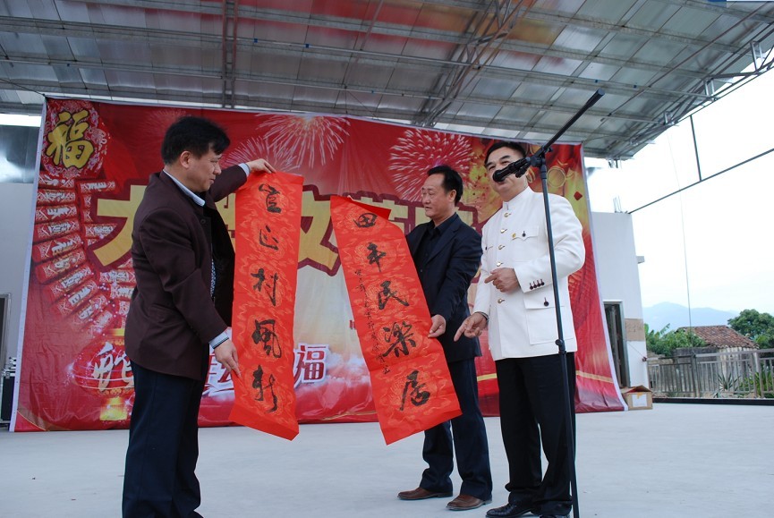 红灯笼挂起,醒狮助兴,歌舞相伴,人头涌动。元宵佳节,龙门县永汉镇官田村新落成的文化广场洋溢着浓烈的喜庆气氛,近千名宾客欢聚在一起“做棚”,共庆新文化广场落成及广东省古村落王屋村挂牌。