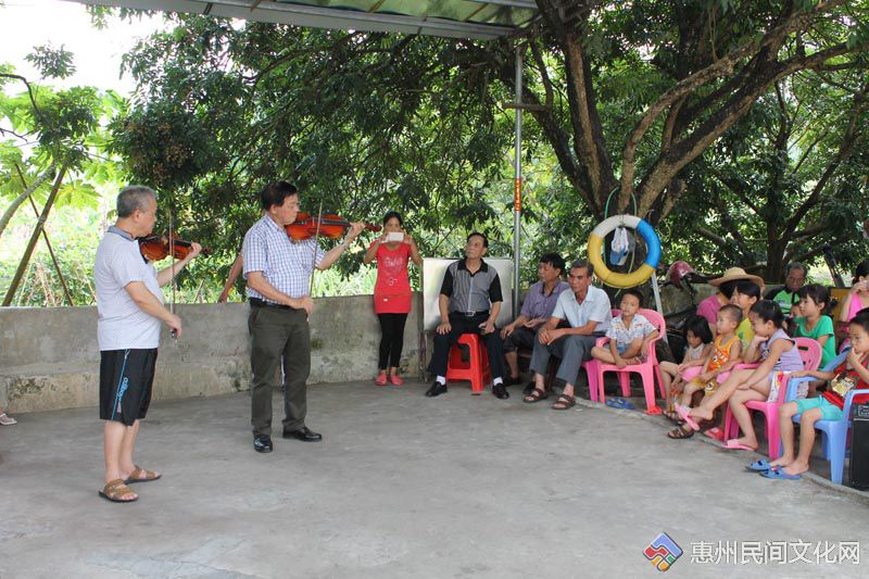 7日14日,中山市老体协文体队枫叶乐队和龙门县老体协送文体下乡,到龙门县龙江镇路溪社区布心村委坑尾村民小组,为村民送上一场精彩纷呈的文体节目。两地老体协的节目丰富多彩,有龙门县老体协常青艺术团表演的《秧歌舞》、《扇舞》,中山市老体协文体队枫叶乐队器乐合奏广东音乐《喜洋洋》、二胡合奏《赛马》、爵士鼓表演、小提琴独奏、合奏、古筝乐曲,两地协会合作演奏广东音乐等。