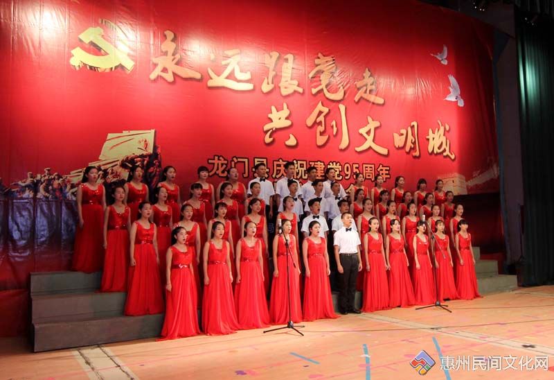 为庆祝中国共产党成立95周年,回顾党的光辉历程,讴歌党的丰功伟绩, 6月29日晚,龙门县在县城影剧院隆重举行了以“永远跟党走 共创文明城”为主题的龙门县庆祝建党95周年专题文艺晚会。范志益、陈伟良、杨绍冲、邬泽勤等县四套班子领导,县人民法院院长、检察院检察长、人武部政委、老干部等近1000人观看了晚会。
