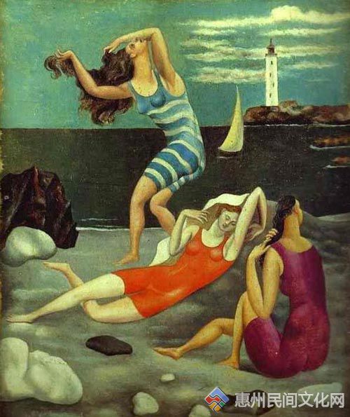 (4)毕加索的绘画是丰富的造型手段,即空间、色彩与线的运用。而且花样繁多,或激昂或狂躁,或可亲或可憎,或诚挚或装假,变化无常不可捉摸,但他永远忠于的是——自由。世界上从来没有一位画家像毕加索那样以惊人的坦诚之心和天真无邪的创造力,以完全彻底的自由任意重造世界,随心所欲地行使他的威力。他不要规定,不要偏见,什么都不要,又什么都想要去创造。他在艺术历程上没有规律可循,反对束缚艺术,崇尚自由,用心画画。龙门农民画以浓墨重彩渲染人们丰富多彩的劳动和生活,以节庆喜事、特色民俗、田间劳动为主要题材,采用夸张变形、大胆取舍、色彩鲜艳、贴近生活的艺术手法,深刻反映出当地“南蛮文化”的风采和人民群众对生活的热爱,对自然和社会的思考及理解,成为中外认识的龙门文化名片。