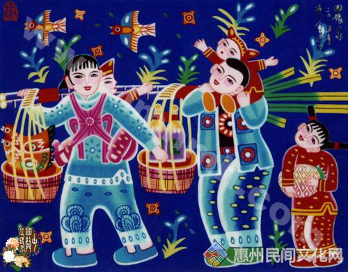 农民画是兴起于上世纪50~60年代我国农村的一种独特的文化艺术现象。在社会主义公有制的体制下,为了政治宣传和繁荣基层文化生活的双重需要,一些美术爱好者被当地政府组织起来,一边劳动,一边作画。因此,农民画既不同于学院式的美术,也区别于传统的民间美术,虽然它大量吸收借鉴了民间民俗艺术的图式、风格,但其强调主题创作、贴近时代、贴近生活的艺术特色是传统民俗民间美术所不具有的。所以说,农民画是中国民间美术的一朵奇葩。至70年代末,农民画形成其第一个发展高峰,全国各地涌现出一批著名的农民画之乡,如陕西户县、上海金山、山东日照、广东龙门等。这些农民画共同构成了全国民间美术一道亮丽的色彩,同时又各具地域特色,它独特的艺术感染力甚至受到专业美术界的高度关注。